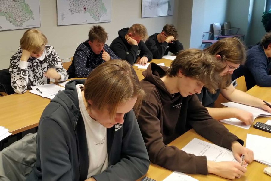 V zasedací místnosti Albrechta z Valdštejna v budově Krajského úřadu Královéhradeckého kraje se s nástrahami testu krajského kola Ekonomické olympiády utkalo několik desítek soutěžících z Královéhradeckého kraje. Naše škola měla tentokrát rekordní účast v podobě osmi žáků a poprvé se do krajského kola probojoval žák druhého ročníku.