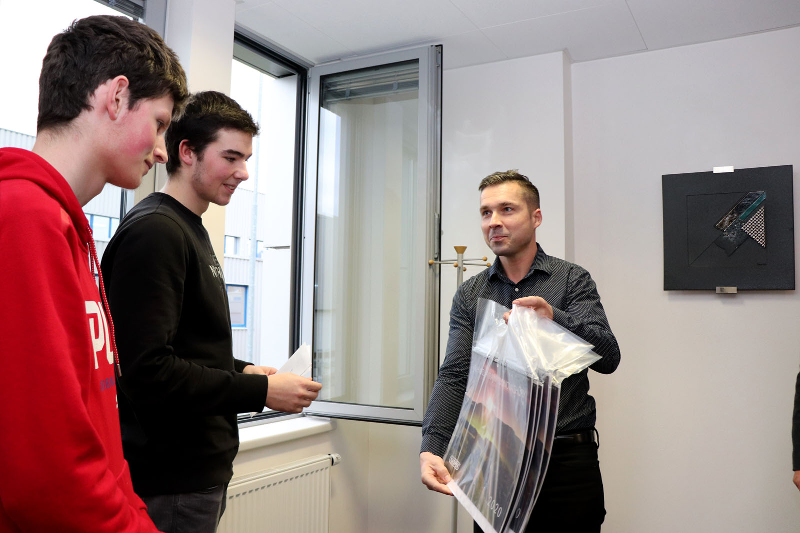 Fotogalerie z převzetí ocenění za úspěšnou závodní sezónu loňského školního roku studentů 3. ročníku oboru Slaboproudá elektrotechnika od firmy KASPER KOVO s.r.o. ze dne 17. 12. 2019.