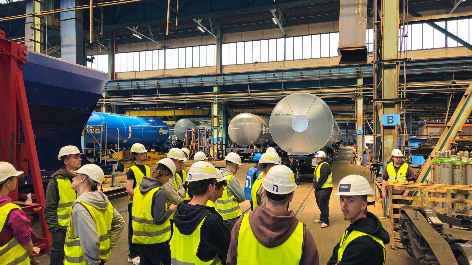 Fotogalerie z exkurze žáků oboru Strojírenství - počítačová grafika a oboru Nástrojař ve výrobním závodu NYMWAG CS v Nymburce ze dne 27. 5. 2025.