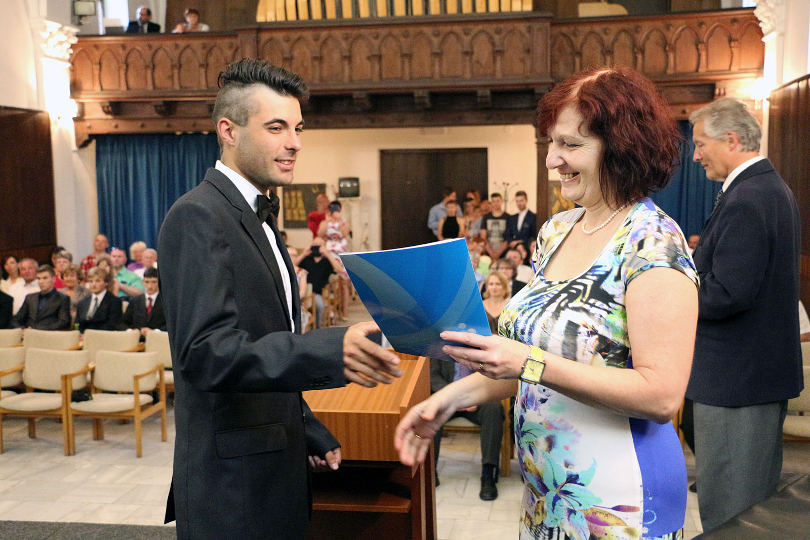 Fotogalerie ze slavnostního předávání maturitních vysvědčení absolventům SPŠ Trutnov v síni B. Martinů v Trutnově dne 30. 5. 2017 ve školním roce 2016/2017 - obory: Elektronické počítačové systémy, Informační technologie a management, Slaboproudá elektrotechnika, Strojírenství - počítačová grafika, Podnikání.