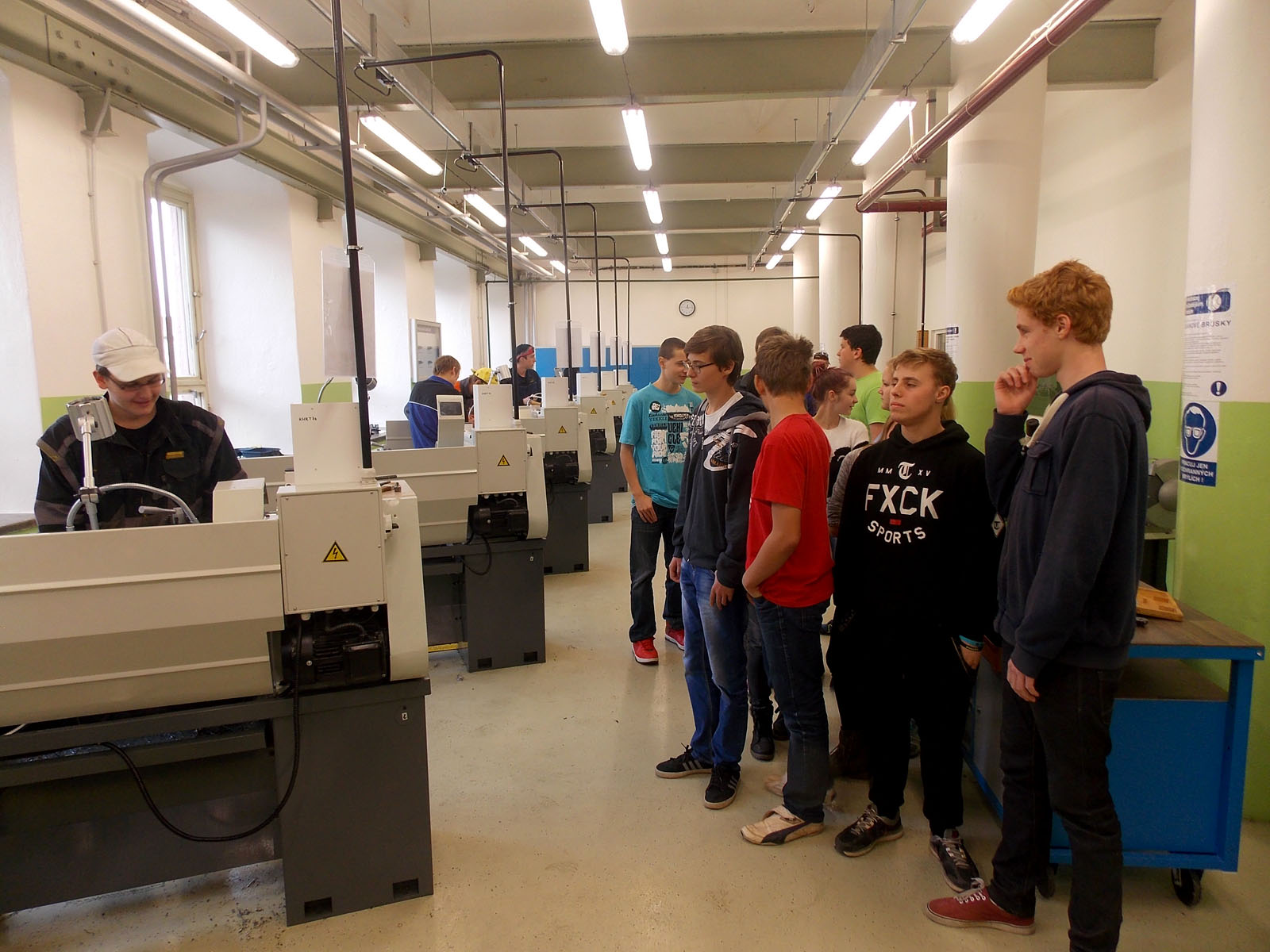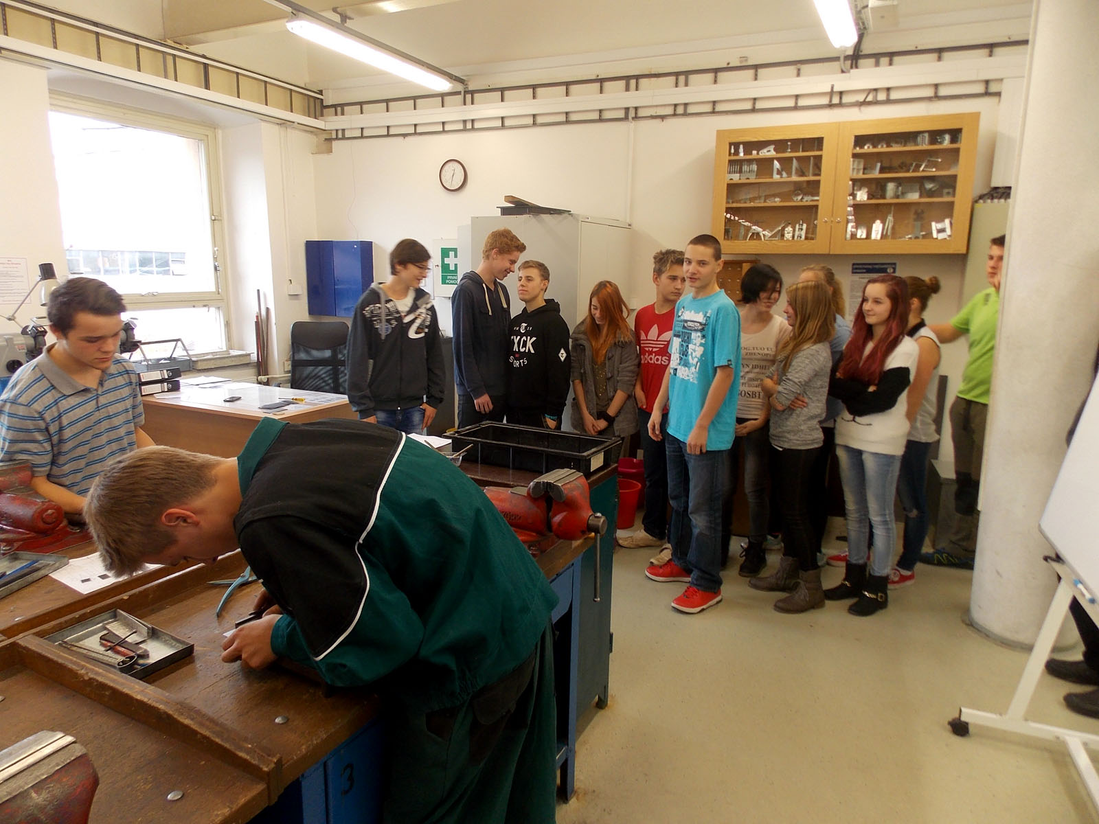 Fotografie z exkurze žáků 8. a 9. tříd ZŠ v Radvanicích v Čechách na pracovišti pro praktické vyučování v Mladých Bukách ze dne 5. 11. 2015.