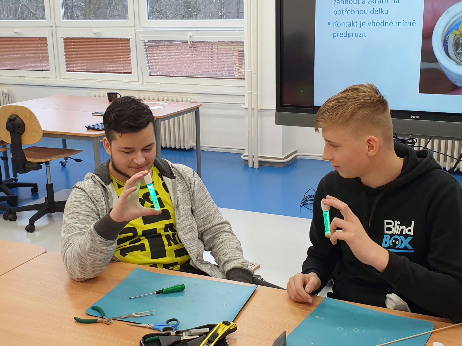 Fotogalerie z výroby světýlka žáky 9. třídy ZŠ Mládežnická v Trutnově dne 19. 11. 2021.