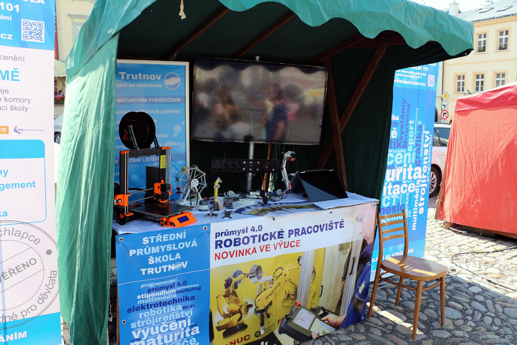 Fotogalerie z prezentace školy na oslavách 25. výročí elektroprůmyslu v Trutnově na Krakonošově nám. ze dne 15. června 2018.
