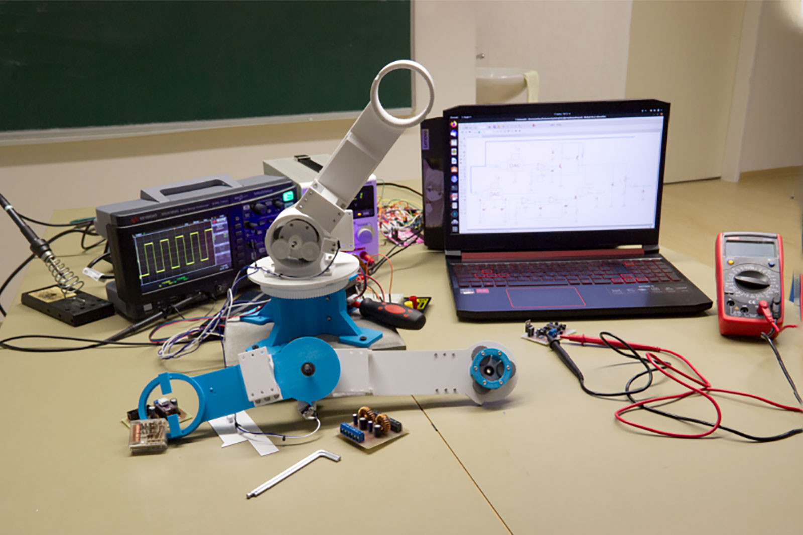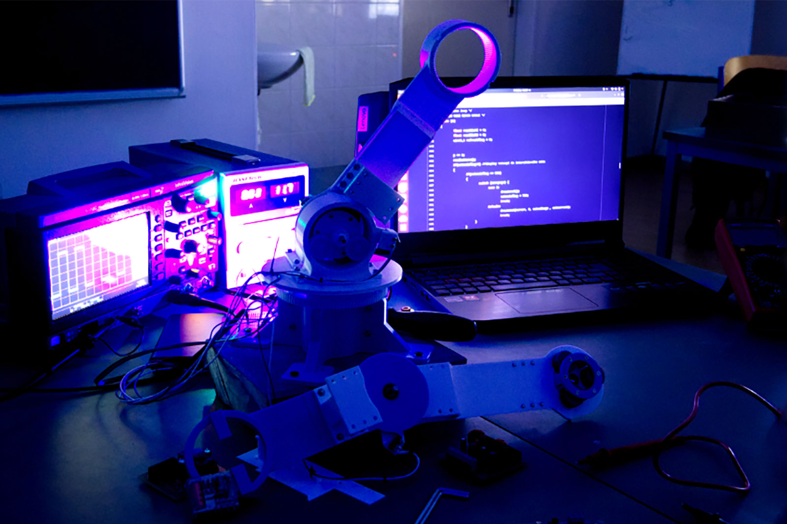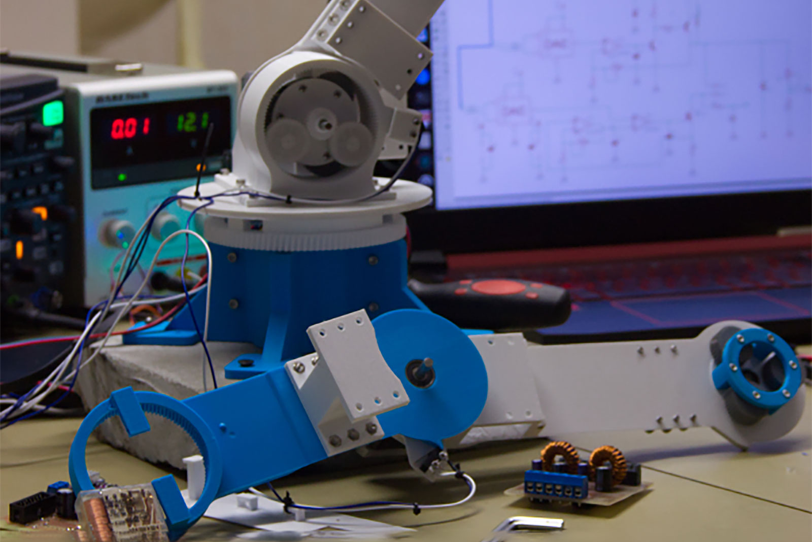 Fotogalerie z kroužku mechatroniky na projektu robotického ramena vlastní konstrukce ve školním roce 2021/2022.