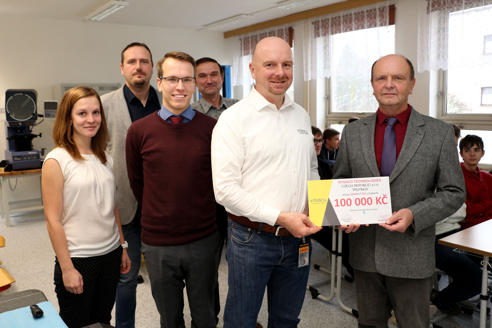 Fotogalerie z předání daru 100 tisíc Kč škole od Vitesco Technologies Czech Republic s.r.o. (dříve Continental) ze dne 4. prosince 2019.