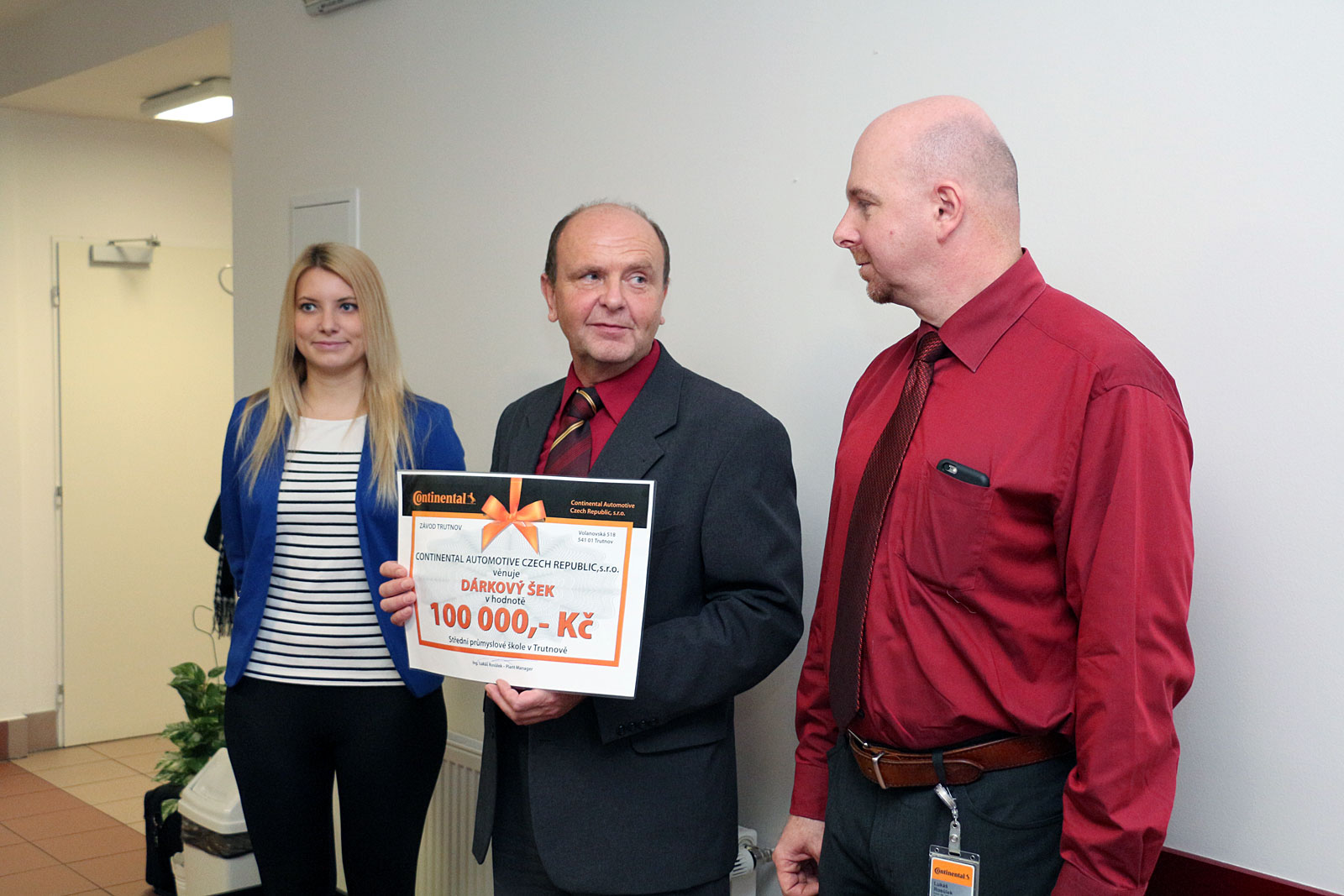 Z předání daru od společnosti Continental