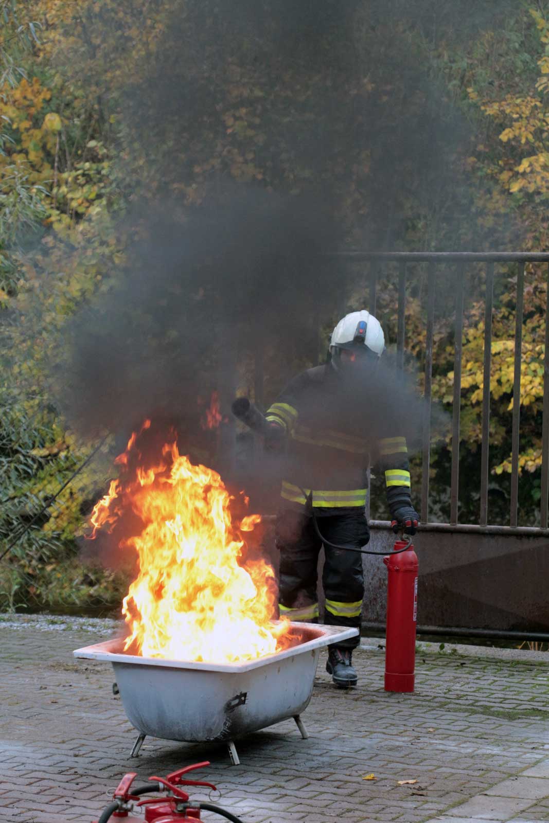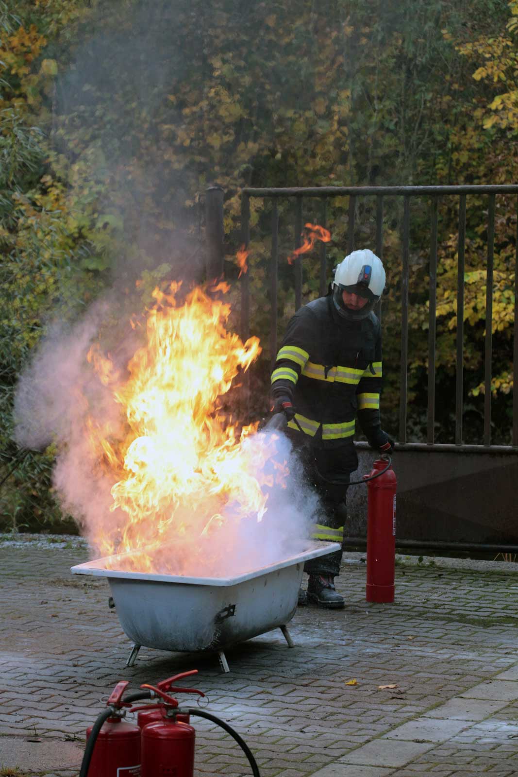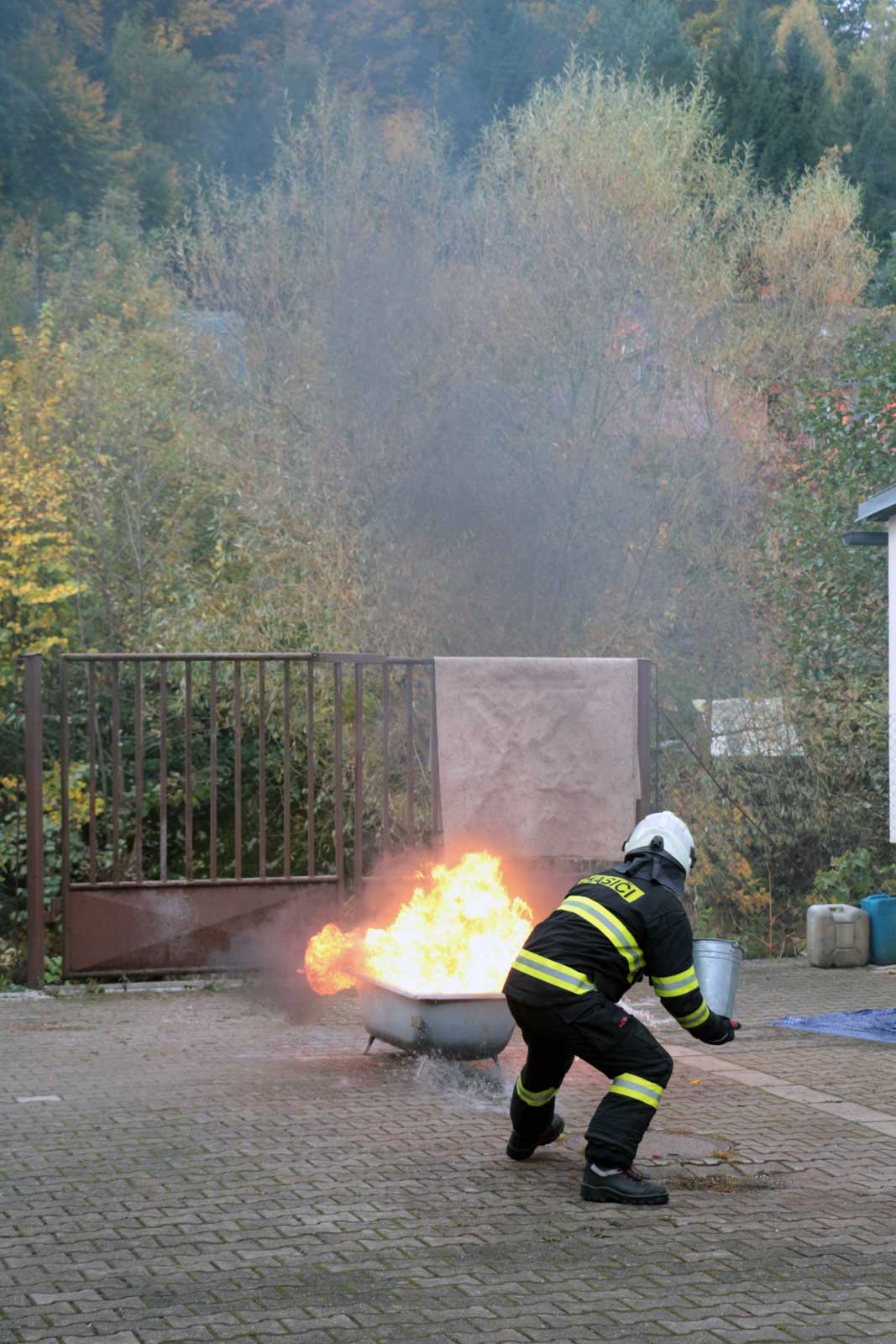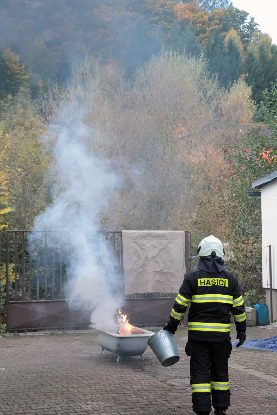 Fotogalerie z požárního školení žáků SPŠ Trutnov profesionálními hasiči z trutnovské stanice HZS Královéhradeckého kraje v říjnu 2025.