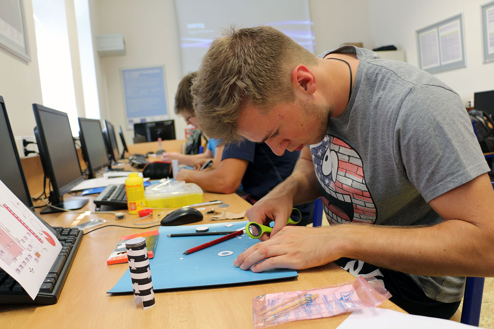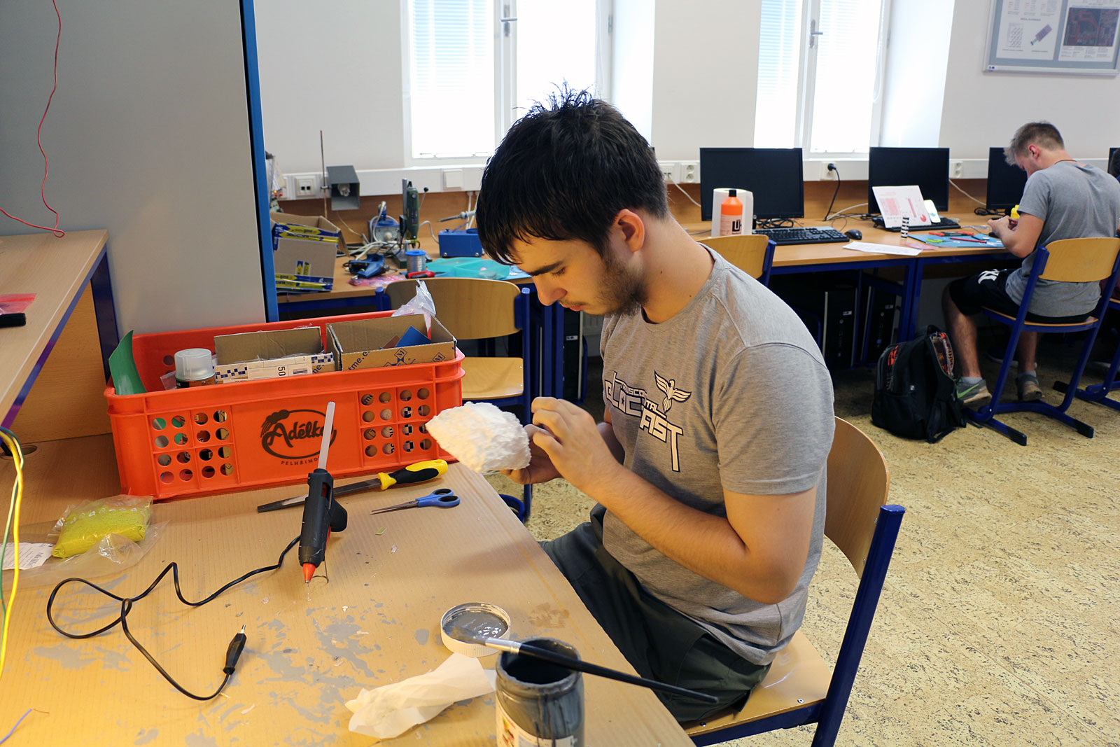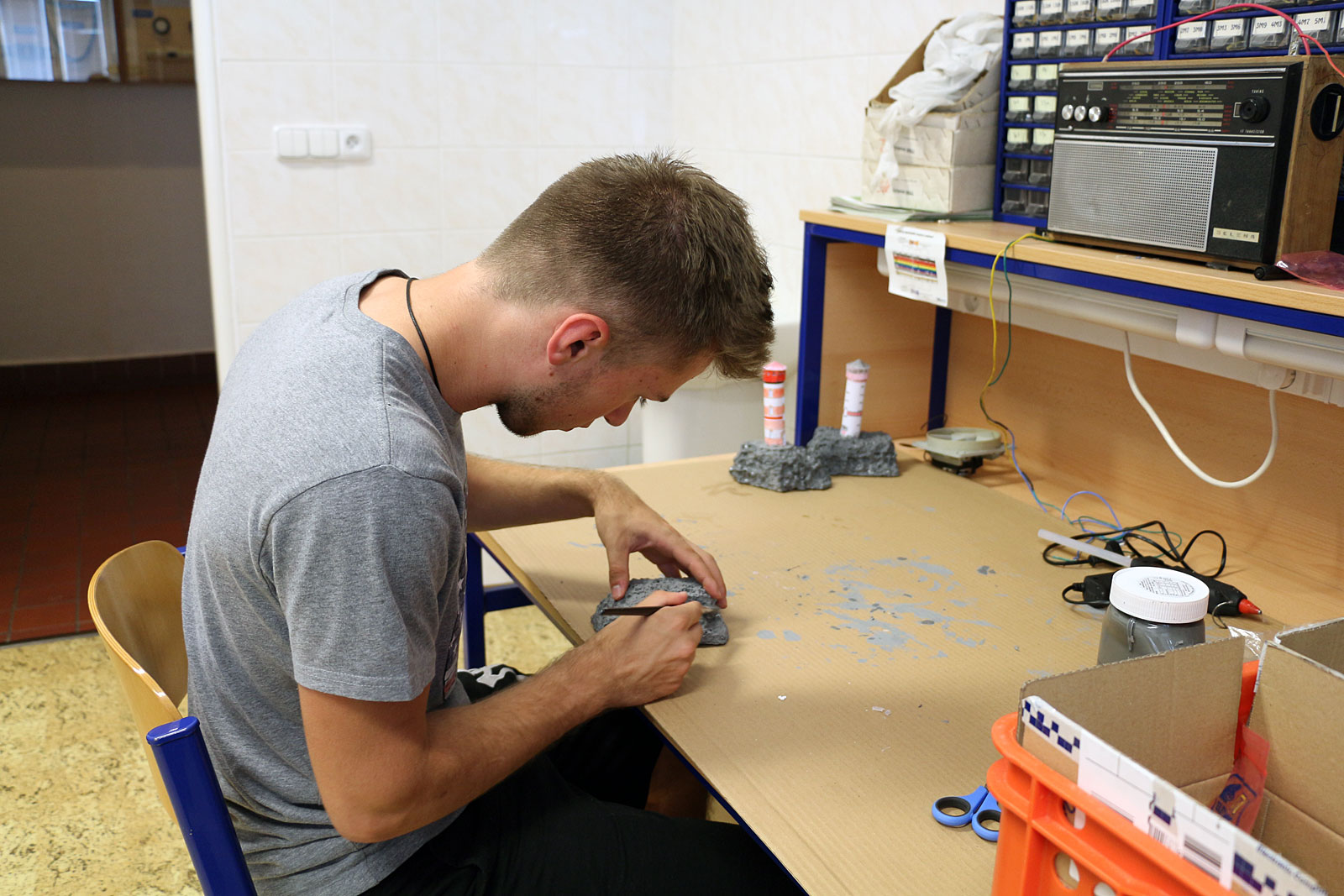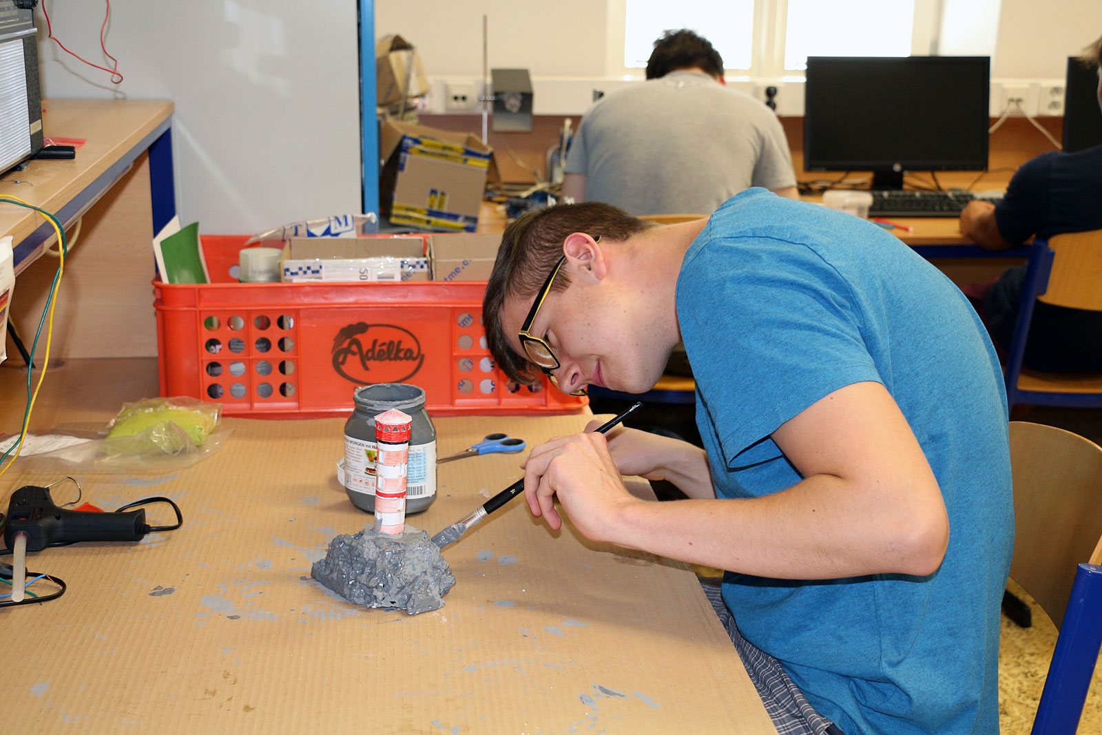 Fotogalerie ze soutěže žáků SPŠ Trutnov při stavbě majáku řízeného prostřednictvím mikroprocesorové techniky ze dne 3. dubna 2017.