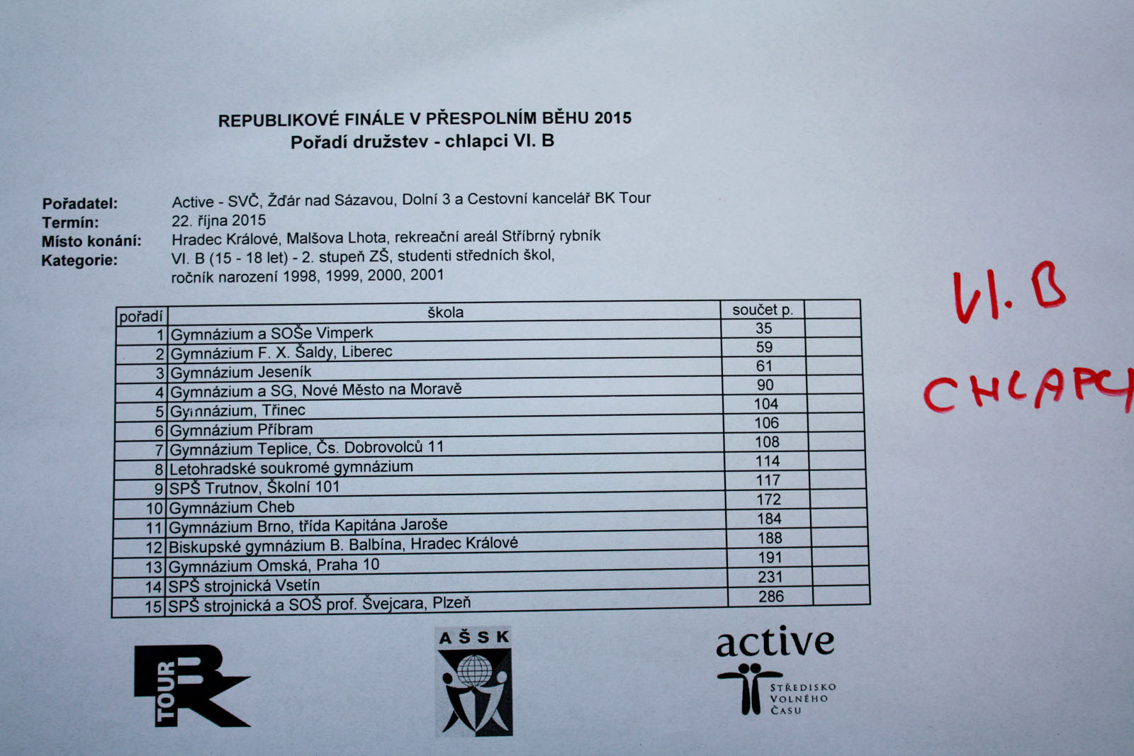 » Republikové finále v přespolním běhu 2015/2016