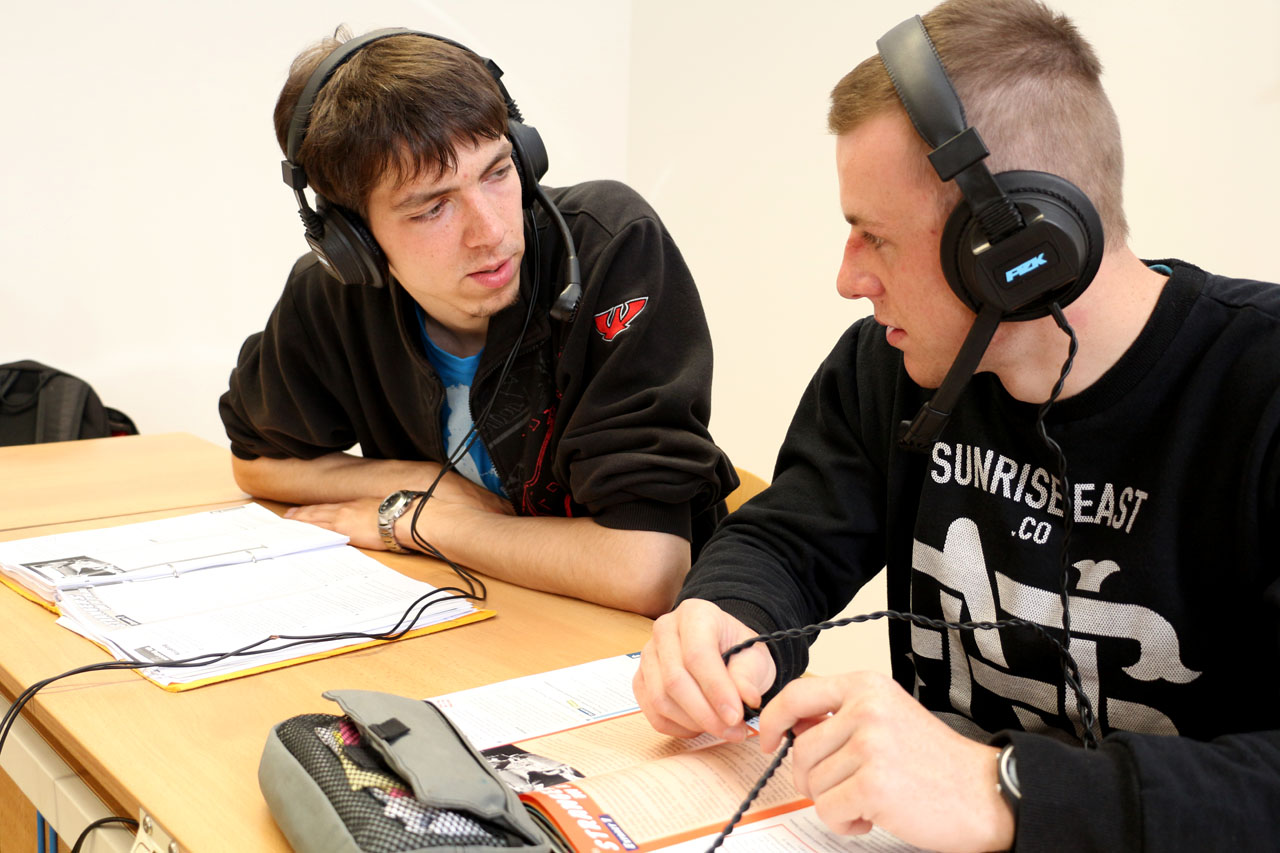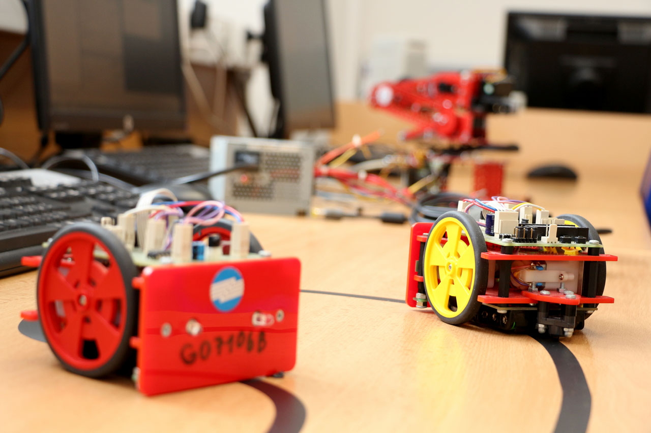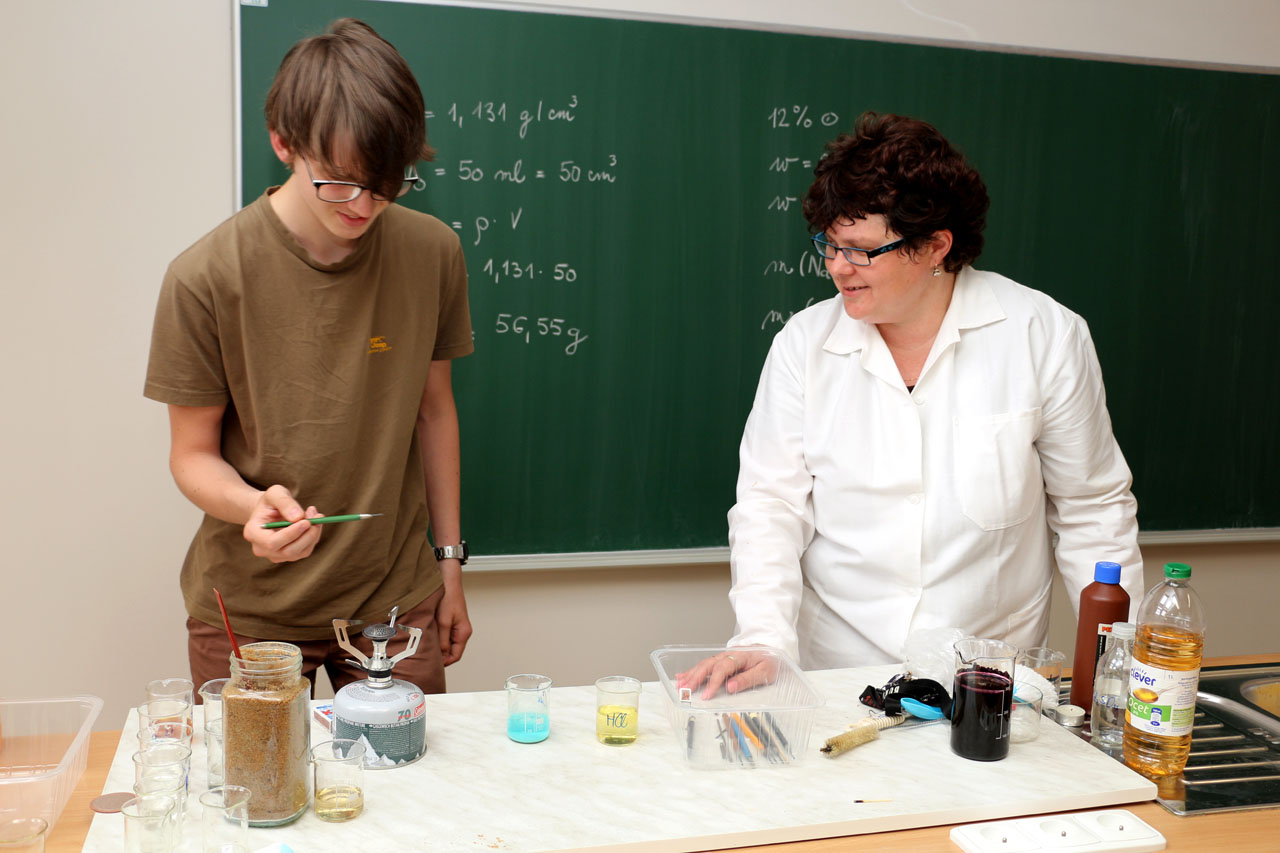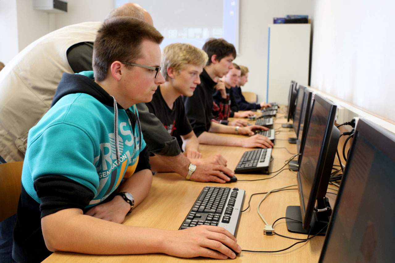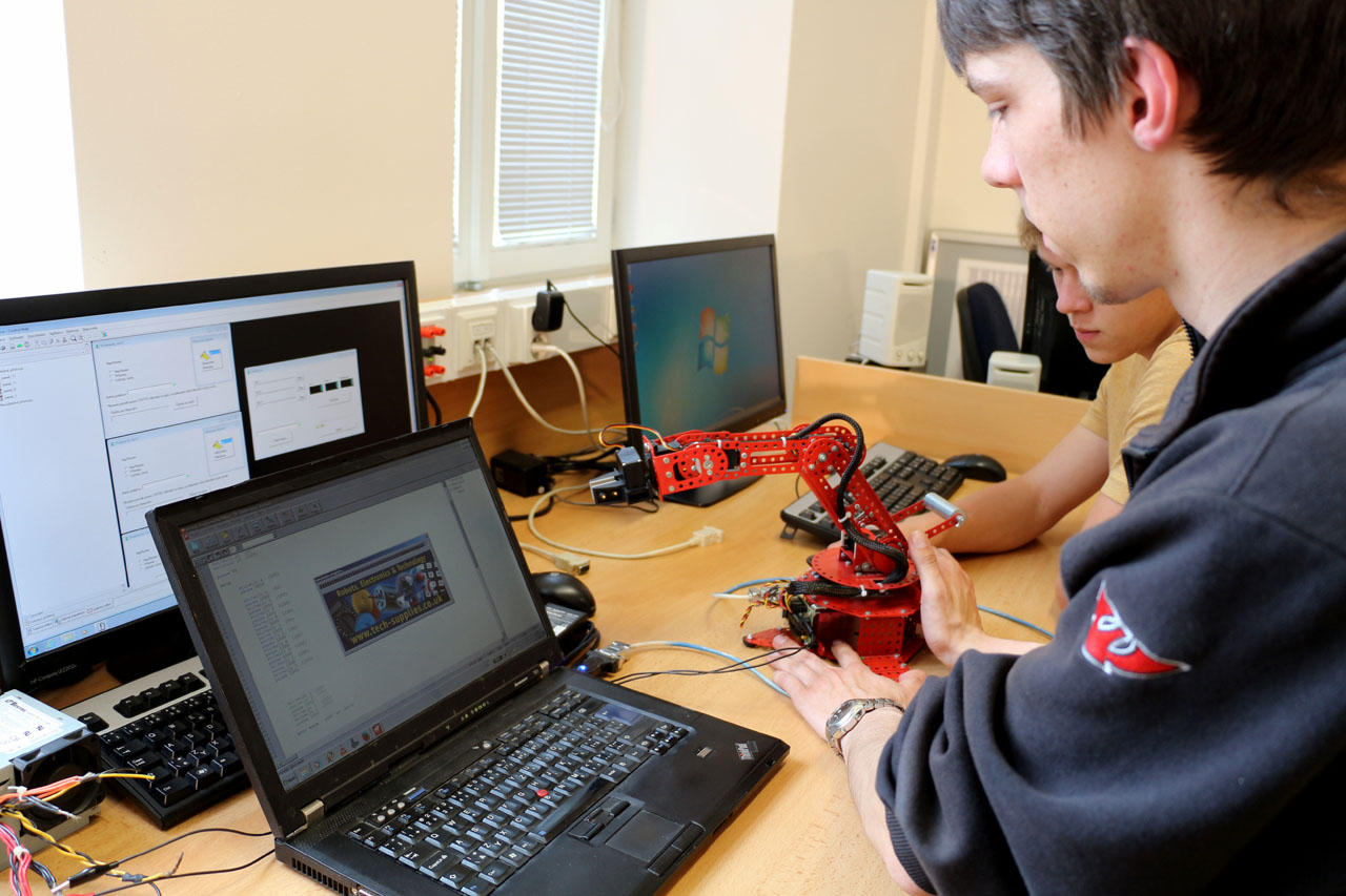 Fotografie z učeben a laboratoří školy.