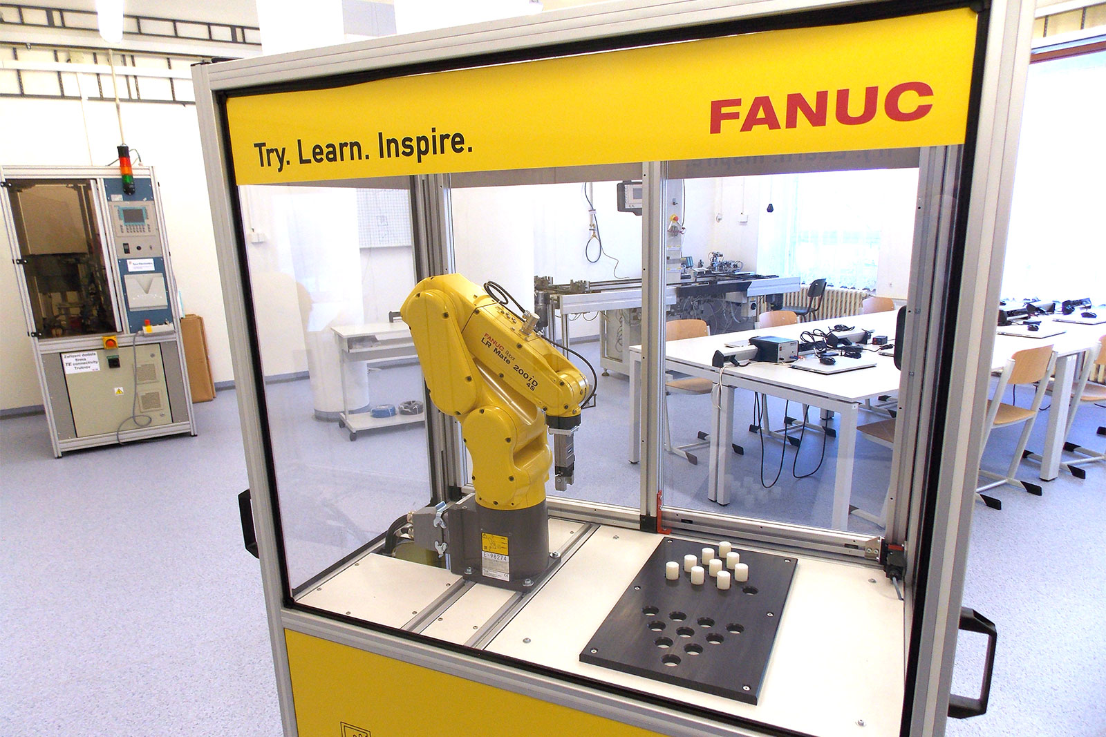 Fotogalerie učebny pro výuku programování programovatelných automatů (PLC) a robotů.