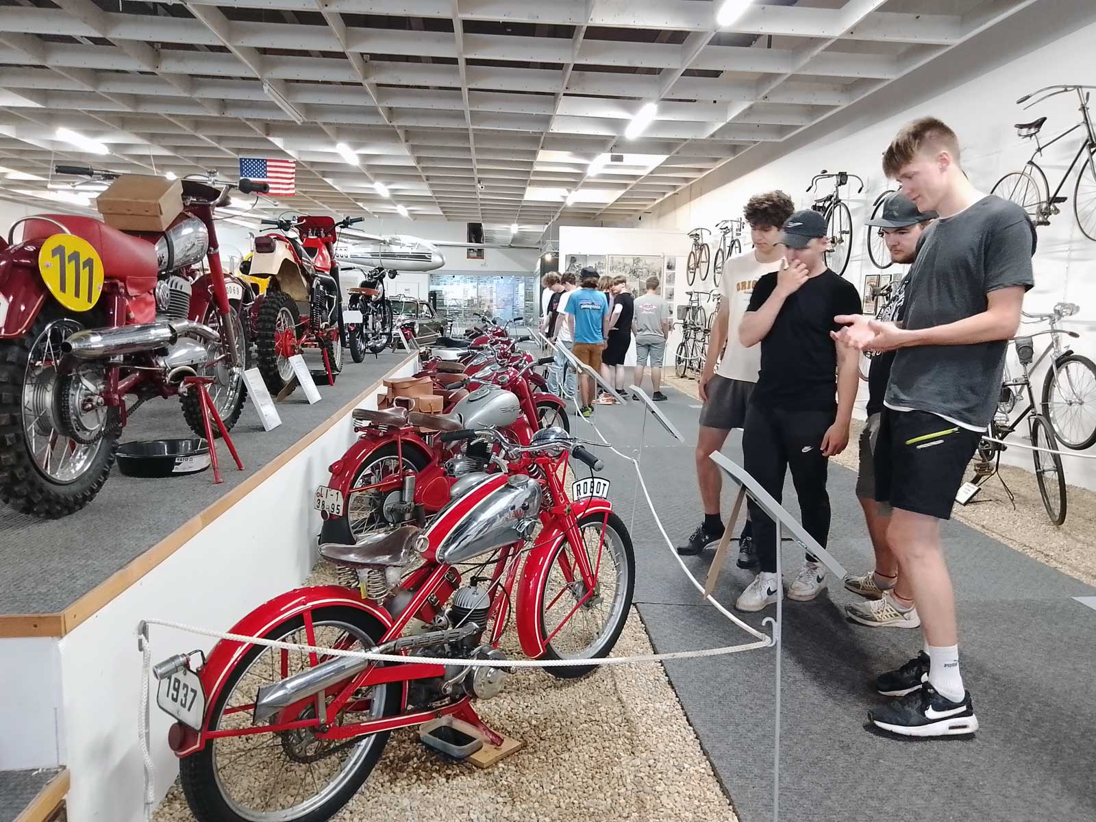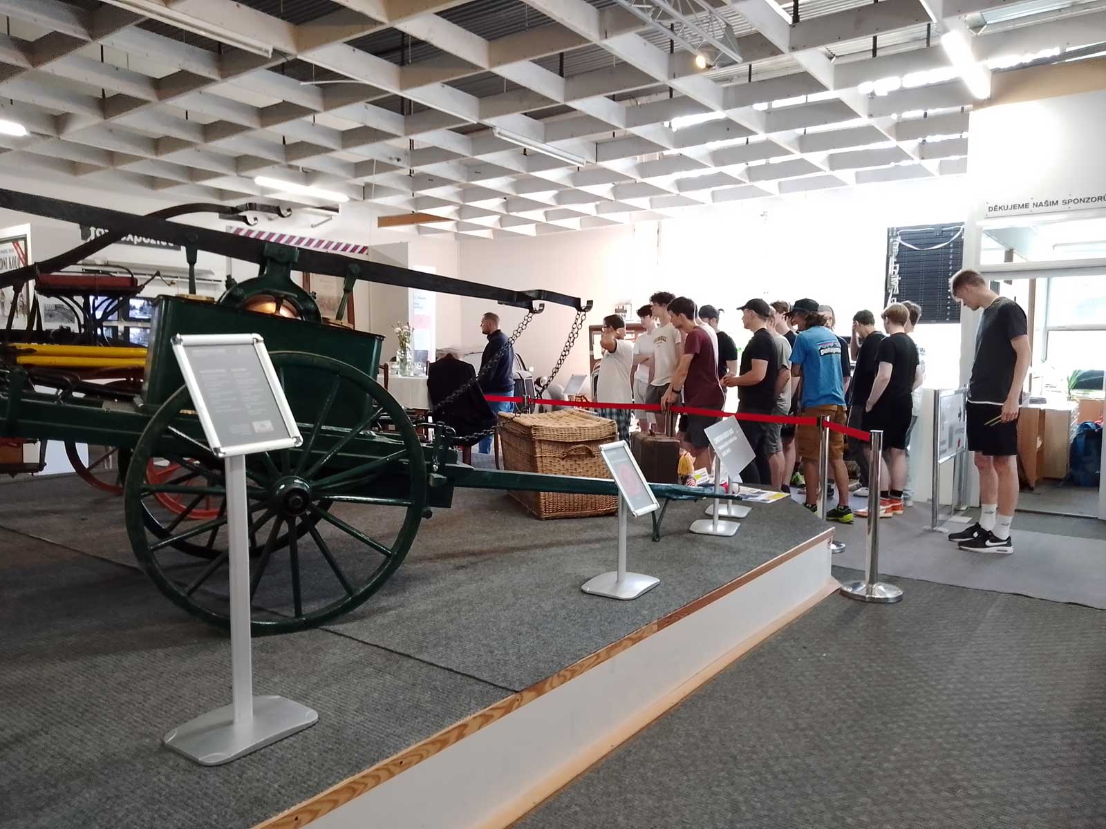 V dopoledních hodinách jsme autobusem dorazili do Liberce a po krátké prohlídce centra jsme přišli k Technickému muzeu, kde jsme si prohlédli čtyři pavilony exponátů old timerových automobilů, motocyklů, kol, amerických kár a strojů. Viděli jsme také první programovatelný tkalcovský stav, který je znám jako předchůdce počítače s využitím děrných štítků. Po zajímavé prohlídce jsme vyrazili do kempu, kde jsme strávili odpoledne ve sportovním a společenském duchu. Dali jsme si večeři a kdo chtěl, tak se vykoupal v bazénu. Po večerce jsme načerpali sílu na další den, kdy nás čekala exkurze do liberecké, resp. japonské firmy Denso a výšlap na Ještěd.
