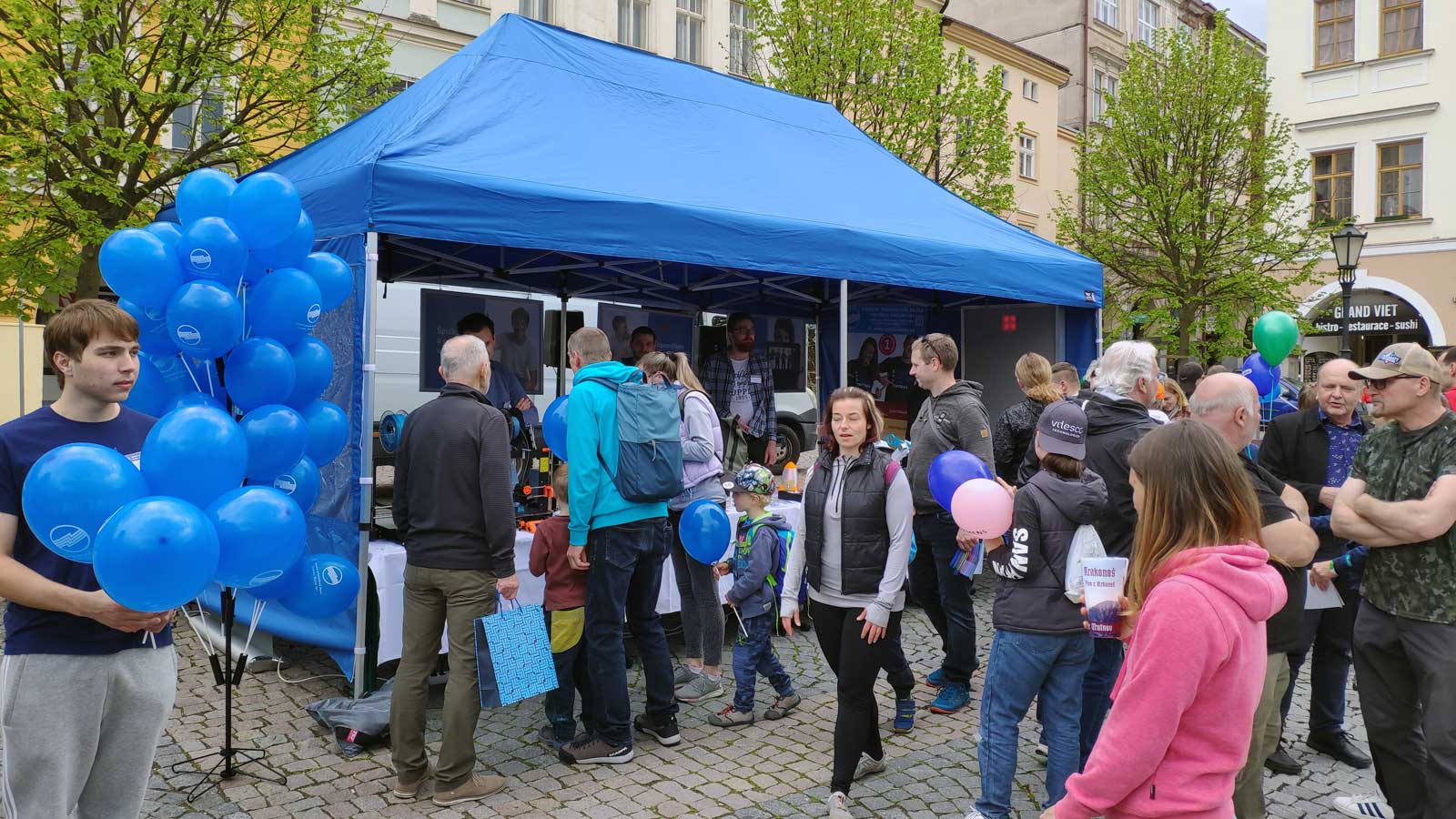 Centrem oslav bylo Krakonošovo náměstí v Trutnově, kde tyto firmy měly prezentační stánky. Naše škola se prezentovala největším stánkem a návštěvníkům jsme předvedli technologii 3D tisku, výukový model chytré domácnosti, který žáci v rámci výuky programují, několik výrobků z elektrotechniky – autíčka se senzory, lampičku, světelnou kostku a další výrobky. Většinu výrobků žáci sami vyrobili z pomocí 3D tisku a dalších technologií na výrobu tištěných plošných spojů a nakonec naprogramovali v rámci výuky nebo kroužků a soutěží. Návštěvníci si také mohli na velkém panelu zahrát legendu her Tetris, vyrobenou a naprogramovanou opět žáky v rámci kroužku.