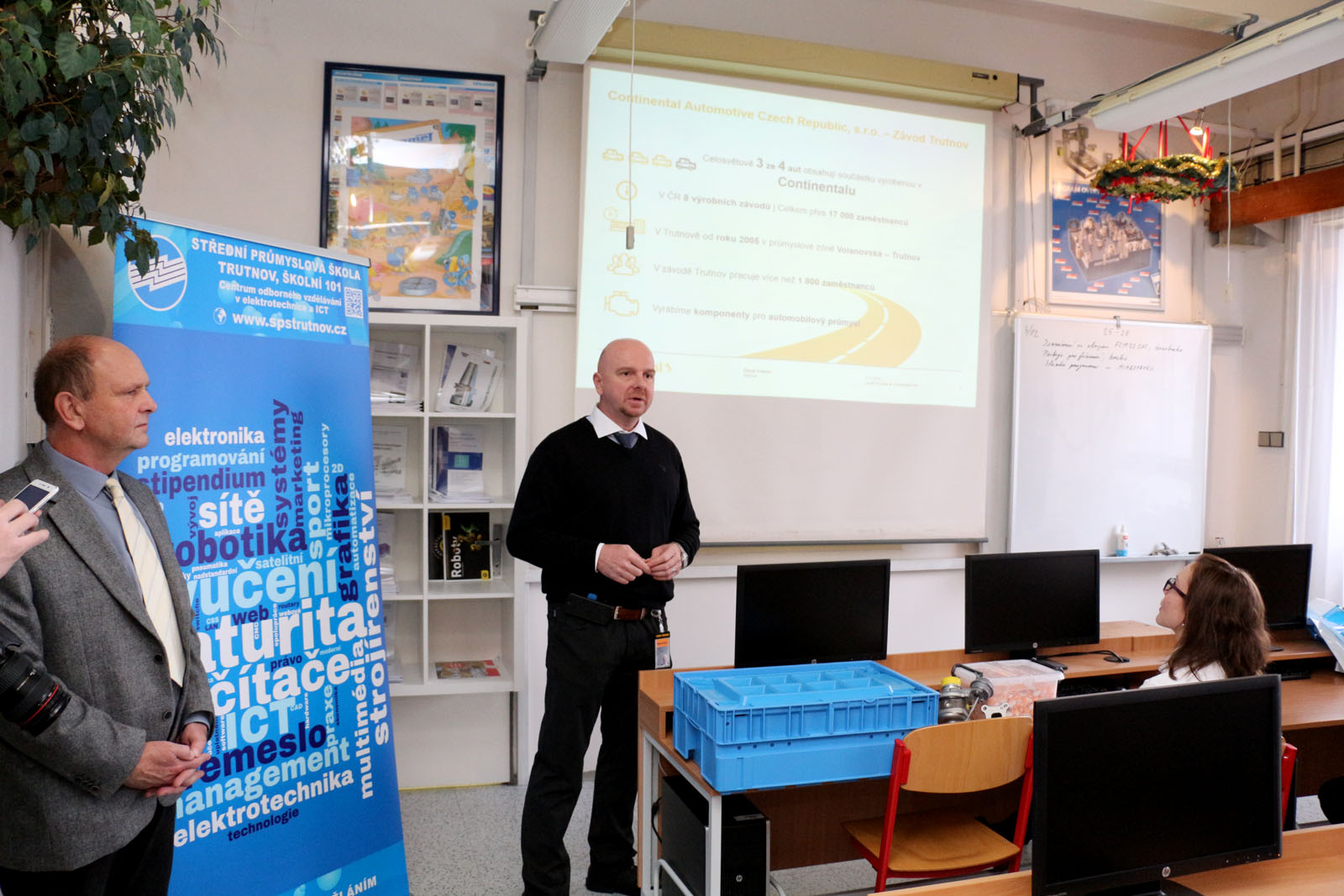 Ředitel společnosti Lukáš Rosůlek seznámil také přítomné žáky s výrobním programem firmy Continental tady v Trutnově, personalistka společnosti Tereza Lešková zase seznámila žáky s možnostmi uplatnění v jejich firmě v průběhu studia či po jeho ukončení. Seznámila žáky také s programy pro podporu studentů středních a vysokých škol v průběhu studia, které firma nabízí. V trutnovském Continentalu našlo uplatnění už téměř 300 absolventů naší školy.