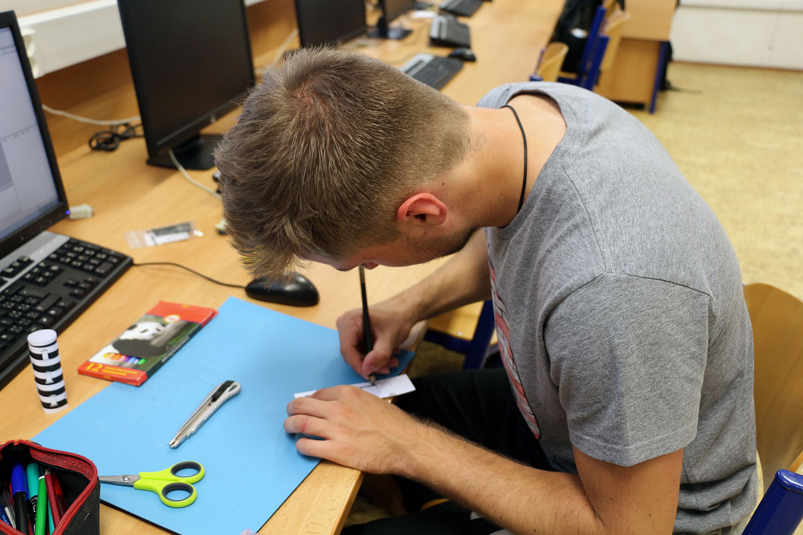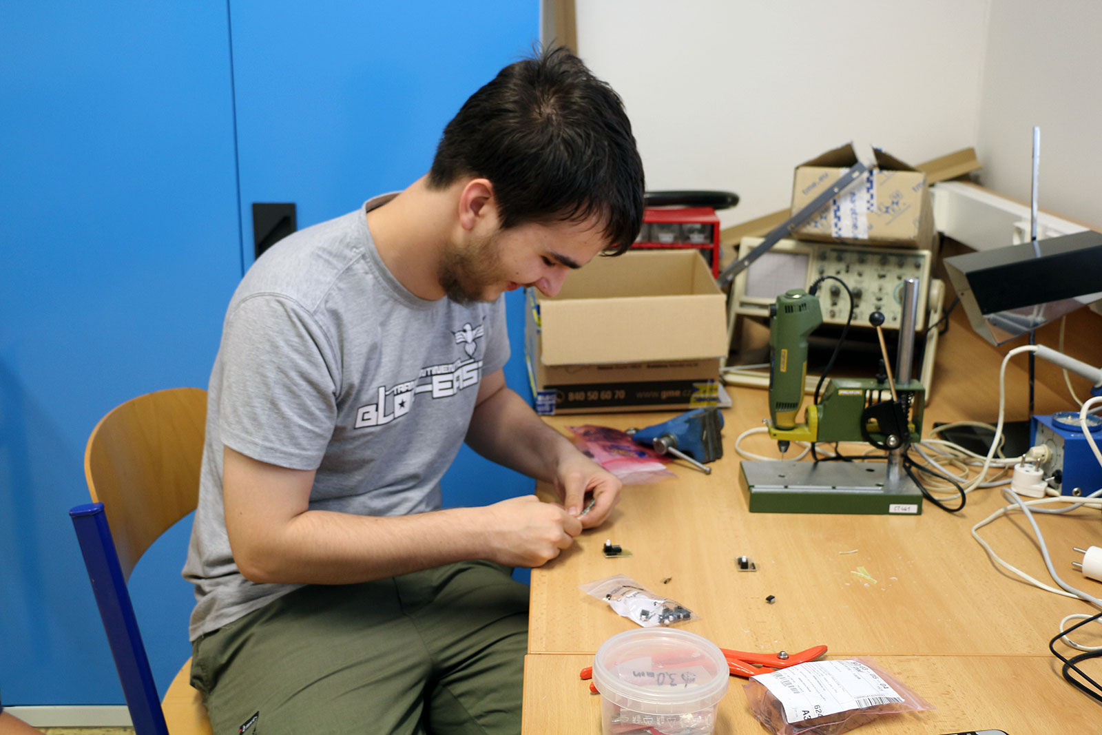 Soutěž „Explore MCUs“ (čtěte zde), která proběhla 3. dubna 2017, byla s ohledem na náročnost určena studentům 3. a 4. ročníku naší školy. Bohužel všichni zájemci o kroužek Elektroniky a mikroprocesorové techniky navštěvují ročník druhý.