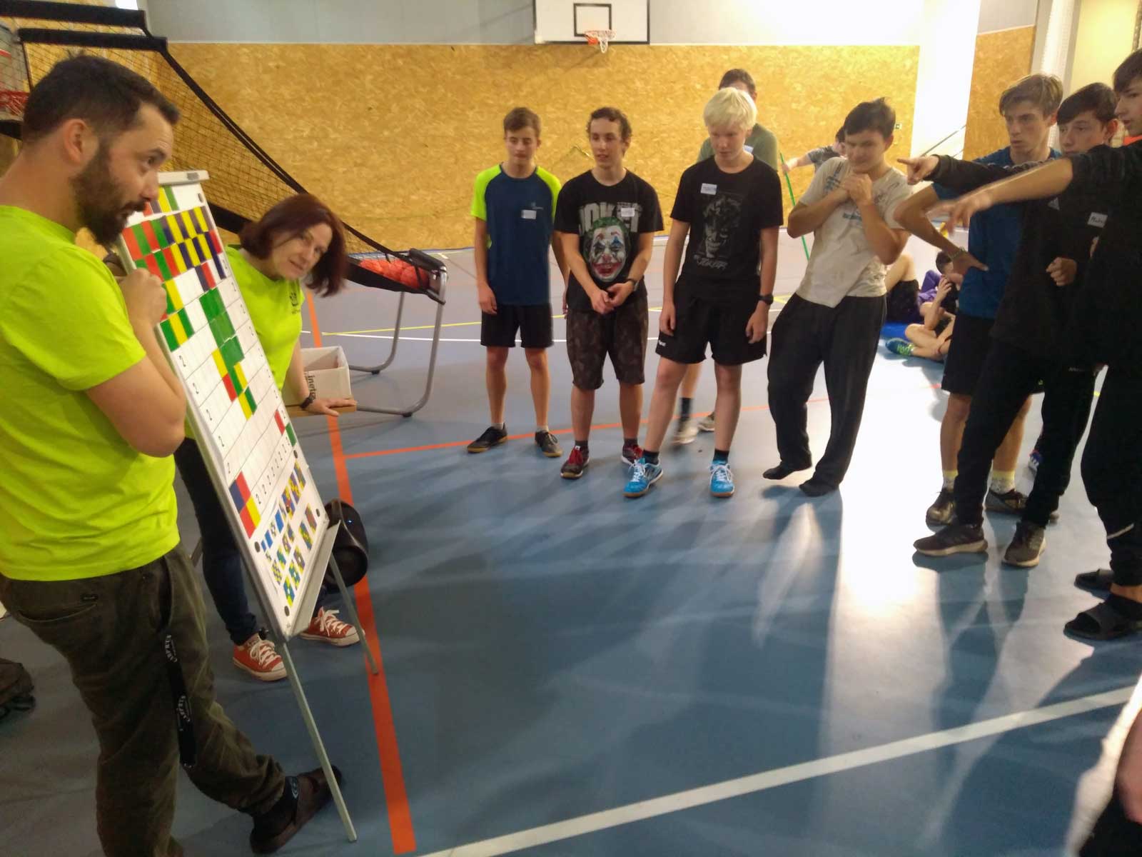 Velení se ujali instruktoři ze SVČ Trutnov Miloš a Šárka, kteří se snažili žáky vzájemně seznámit a poznat jejich koníčky a záliby. Během 6 hodin kluci předvedli své komunikační a sportovní schopnosti. Nevyhnuli se ani prezentaci svého divadelního a výtvarného nadání.