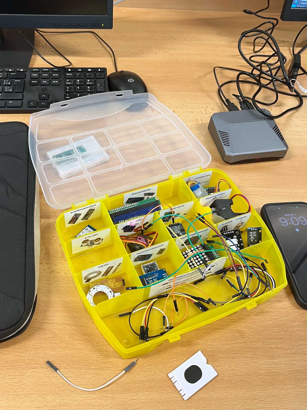 Před čtyřmi lety jsme aktualizovali osnovy a zahrnuli programovatelnou elektroniku do oboru Elektronické počítačové systémy v rámci předmětu IOT. Nyní se naše plány úročí v závěrečných projektech maturitního ročníku. Studenti ve dvojicích zpracovávají hardwarový a softwarový návrh a prototypují výsledná zařízení.