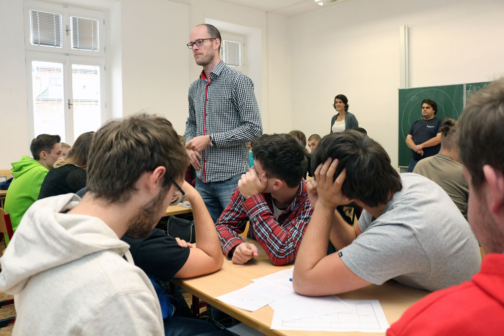 Již v průběhu prvního bloku se žáci rozdělili do pracovních týmů a podle výkladu lektorů začali s vytvářením svého záměru podle zvoleného cíle, který v dalších blocích postupně zpřesňují. Mezi jednotlivými týmy funguje interakce. Byl jsem mile potěšen, jak se všichni zapojili do vytváření záměrů. Objevily se velmi zajímavé myšlenky postupně se proměňující v konkrétní záměry, které bude každý tým dál rozvíjet. Všechny týmy pracují s nasazením a s elánem, své dílčí výsledky si prezentují navzájem a během dvouhodinového workshopu panuje tvůrčí atmosféra.