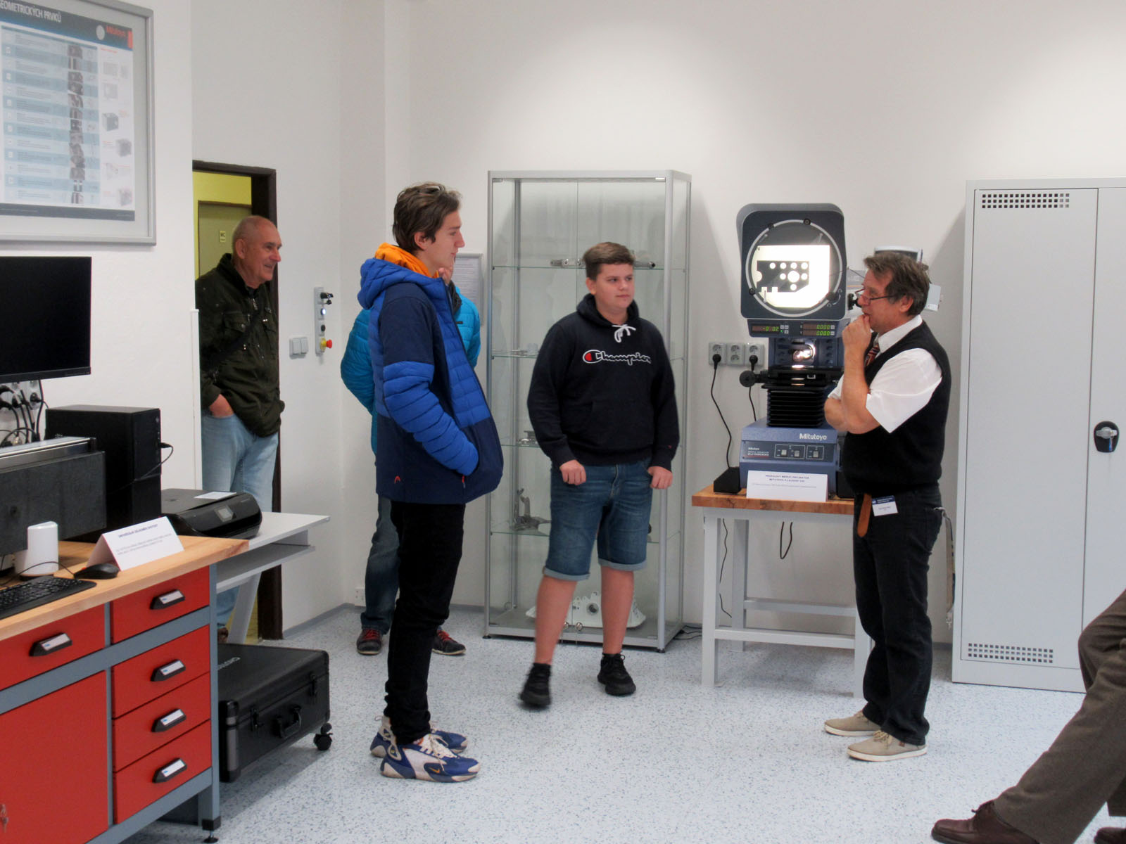 Návštěvníci shlédli ukázky použití nejmodernějších technologií ve výuce informačních a komunikačních technologií, elektrotechniky, strojírenství a automatizace. Kromě ukázek z výuky jsme návštěvníkům také prezentovali výsledky prací žáků v rámci mimoškolních aktivit, zejména odborných soutěží a kroužku robotiky, mechatroniky nebo kroužku elektroniky a mikroprocesorové techniky. Nechyběly ani ukázky tisku na 3D tiskárnách, využívané ve spojení s výukou modelování a konstruování v profesionálních CAD systémech. Nově jsme zájemcům předvedli strojírenskou laboratoř se specializací na kontrolu a měření moderně vybavenou technicky vyspělým zařízením pro měření rozměrů vyrobených součástí v řádu 0,001 mm, zařízením pro kalibraci a pevnými měřidly. Dále zařízení Elvis 2+ pro výuku celé řady odborných předmětů v oblasti elektrotechniky (více v článku Špičkové vybavení).