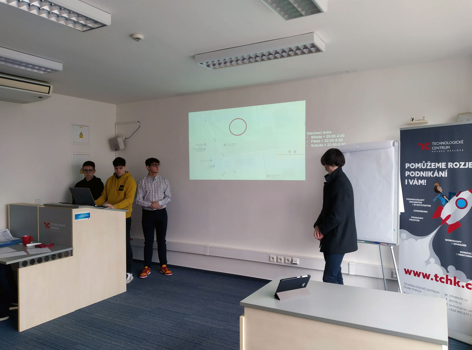 Celkem 5 týmů představilo svoje vypracované projekty ve formě prezentace nekompromisní porotě, kterou tvořila dvojice zkušených podnikatelů.